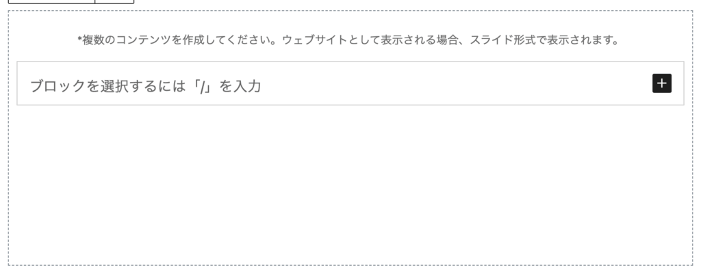 ブロックエディタ上では「1枚ずつ」作成 → 複数で自動スライドされる仕組みです。
