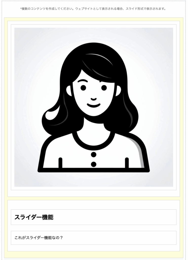 この中に、好きなコンテンツをスライド形式で挿入できます。