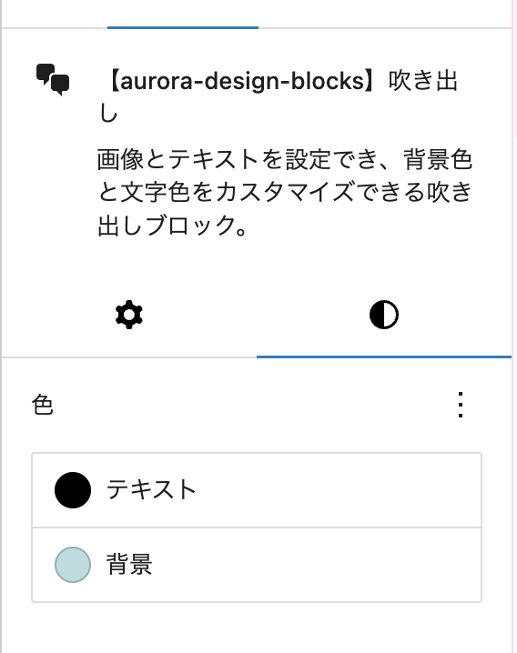 ブロック追加ボタンから「[aurora-design-blocks] 吹き出し」を選びます。